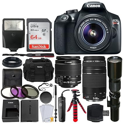 Amazoncom Canon Sl2 Dslr Camera With 18 55mm Is Stm 75 300mm